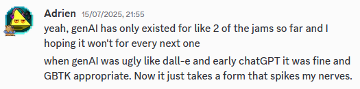 Oh no, here we go again. So we’re at the point now where some people have what I term “AI fatigue”, as the novelty has long worn off. Substitute “AI” with “slop” if you prefer. I’ve been thinking about a discussion I had with Adrien, host of the Game Breaker’s Toolkit Jam, in July.