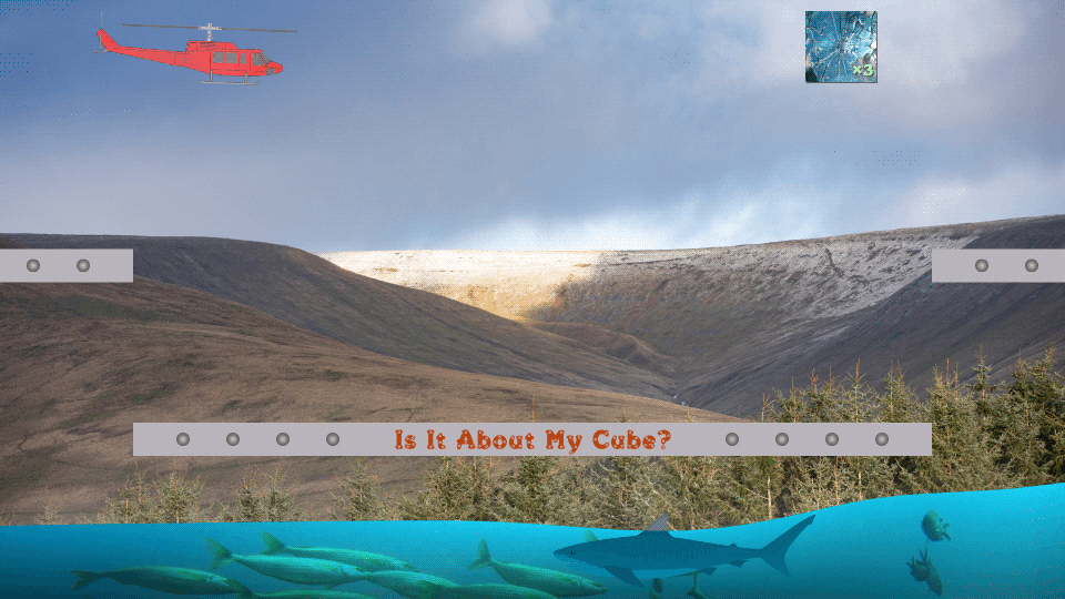 This is also more visually interesting than all, or most, of my previous games. It’s still a hodgepodge of free graphics that don’t belong together, but there’s much more life to it! The water wobbles about, affecting anything that swims inside, steam rises off of it, helicopters above sway and have a clouds effect applied.